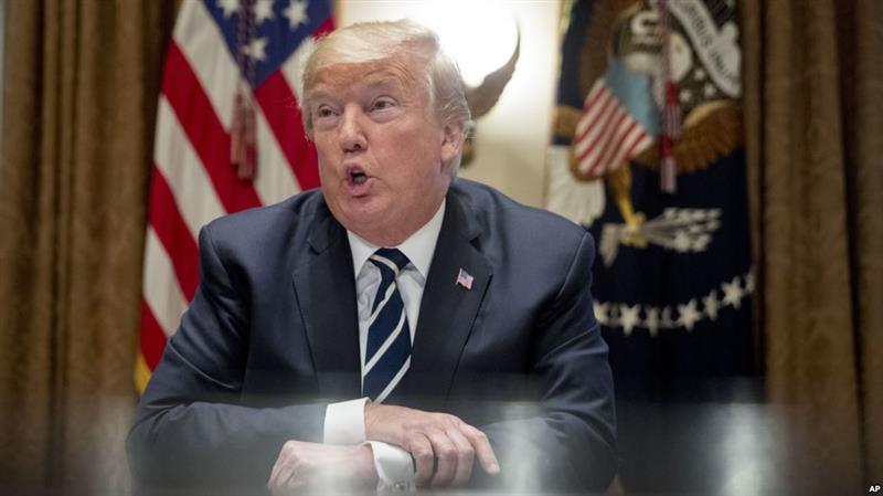 川普总统在白宫内阁室会晤国会成员时与媒体讲话。(2018年7月17日)